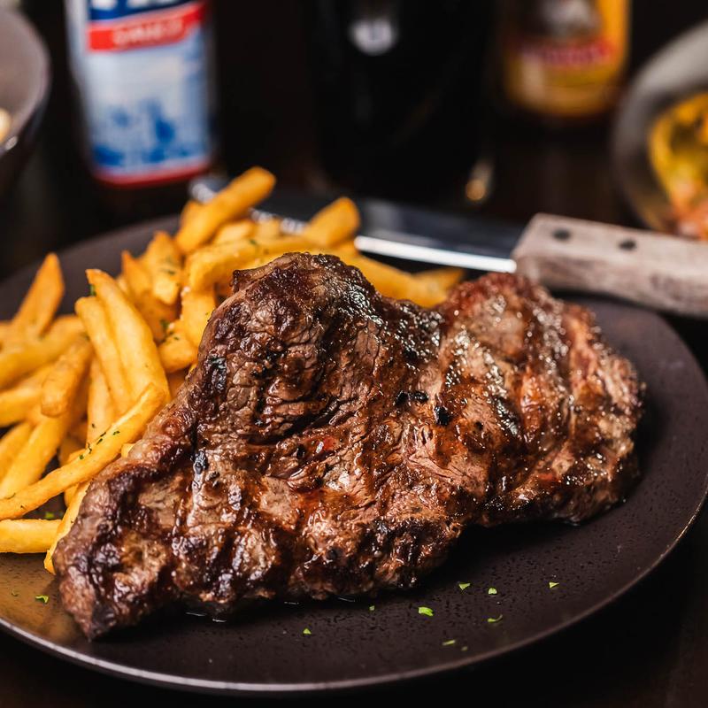 12 oz NY strip steak, mushrooms, onions, Jameson cream sauce, with vegetables and garlic mash.